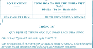 Thông tư 324/2016/TT-BTC, ngày 21/12/2016 của Bộ tài chính. Quy định hệ thống mục lục ngân ...