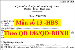 Mẫu số 13-HSB theo Quyết định 186/QĐ-BHXH là mẫu giấy ủy quyền làm thủ ...