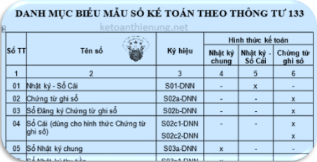 3) Hệ thống sổ sách kế toán theo Thông tư 133 (Áp dụng cho DN nhỏ và vừa)