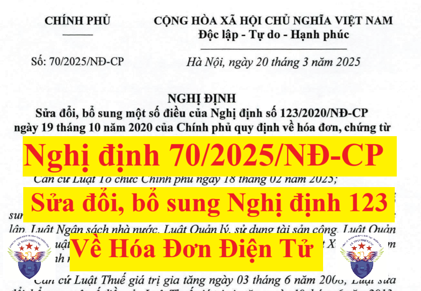 Căn cứ……… Điều ….. Nghị định số 70/2025/NĐ-CP ngày 20/3/2025 của Chính phủ sửa đổi, bổ sung một số điều của Nghị định số 123/2020/NĐ-CP quy định về hóa đơn, chứng từ;