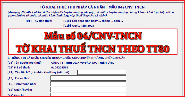 Mẫu số 04/CNV-TNCN Tờ khai thuế thu nhập cá nhân theo TT 80/2021
