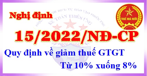 Nghị định 15/2022/NĐ-CP ngày 28/01/2022 của Chính phủ Giảm thuế giá trị gia tăng đối với các nhóm hàng hóa, dịch vụ đang áp dụng mức thuế suất 10%. Có hiệu lực từ ngày 01 tháng 02 năm 2022.