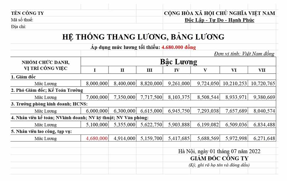 Hiện nay, doanh nghiệp bắt buộc phải xây dựng thang bảng lương theo quy định của luật, nhưng không cần đăng ký tại Phòng Lao động – Thương binh và Xã hội.
