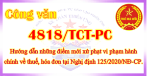 Ngày 12/11/2020 Tổng cục thuế ban hành Công văn 4818/TCT-PC về việc một số điểm ...