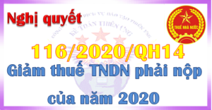 Ngày 19/6/2020 Quốc hội ban hành Nghị quyết số 116/2020/QH14 giảm thuế thu nhập doanh ...