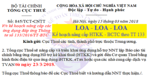 Ngày 15 tháng 03 năm 2018 Tổng cục thuế đã ban hành Công văn 845/TCT-CNTT ...