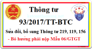 Thông tư 93/2017/TT-BTC ngày 19/9/2017 của Bộ tài chính sửa đổi, bổ sung Thông tư ...