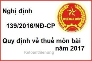 Nghị định 139/2016/NĐ-CP ngày 4/10/2016 của Chính phủ: Quy định về lệ phí Môn bài, ...