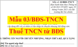 Mẫu số 03/BĐS-TNCN theo thông tư 80/2021/TT-BTC là Tờ khai thuế thu nhập cá ...