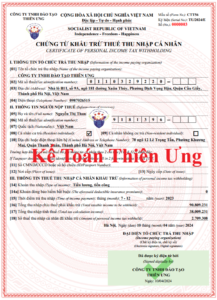 Chứng từ khấu trừ thuế TNCN là loại chứng từ dùng để ghi nhận thông ...