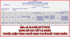 Mẫu phục lục Bảng kê chi tiết cá nhân thuộc diện tính thuế theo biễu ...
