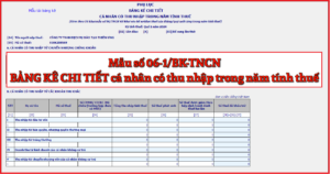 Mẫu Bảng kê chi tiết cá nhân có thu nhập trong năm tính thuế ...