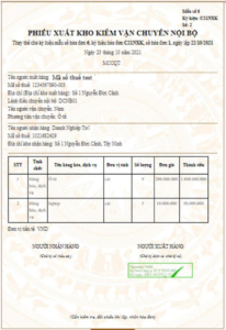 Phiếu xuất kho kiêm vận chuyển nội bộ là loại chứng từ phát hành, sử ...