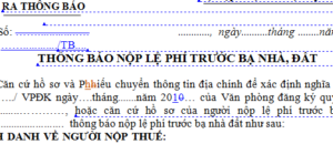 Mẫu thông báo nộp lệ phí trước bạ nhà đất Mẫu số 01-1/LPTB (Ban hành ...