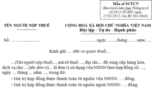 Đơn xác nhận chưa được thanh toán Mẫu 01/TCN theo Thông tư 26/2015/TT-BTC ngày 27/02/2015 ...