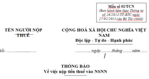 Mẫu 02/TCN Thông báo về việc nộp tiền thuế vào NSNN Ban hành kèm theo ...