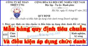 Mẫu bảng quy định các tiêu chuẩn và điều kiện áp dụng chức danh: Đối ...