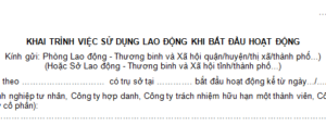 Mẫu khai trình việc sử dụng lao động khi mới bắt đầu hoạt động Mẫu ...