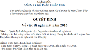 Mẫu quyết định của Giám đốc về việc đi nghỉ mát, phê duyệt kinh phí ...