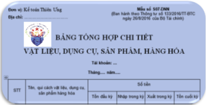 Hướng dẫn cách lập Bảng tổng hợp chi tiết vật liệu dụng cụ sản phẩm ...
