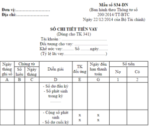 Hướng dẫn cách lập sổ chi tiết tiền vay Mẫu S34 – DN theo Thông tư ...