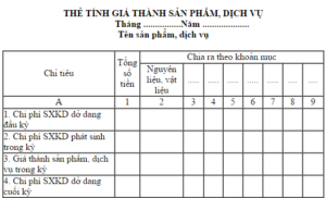 Hướng dẫn cách lập thẻ tính giá thành sản phẩm, dịch vụ Mẫu S37-DN theo ...