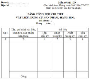 Hướng dẫn cách lập bảng tổng hợp chi tiết vật liệu, dụng cụ, sản phẩm, ...
