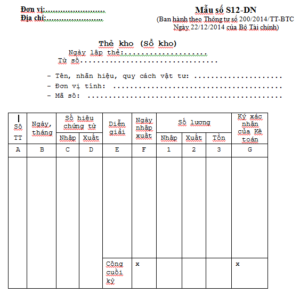 Hướng dẫn cách lập thẻ kho (sổ kho) Mẫu S12- DN theo Thông tư 200/2014/TT-BTC: Mục ...