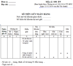 Hướng dẫn cách lập sổ tiền gửi ngân hàng Mẫu S08- DN theo Thông tư ...