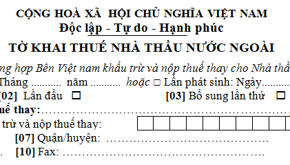 TỜ KHAI THUẾ NHÀ THẦU NƯỚC NGOÀI